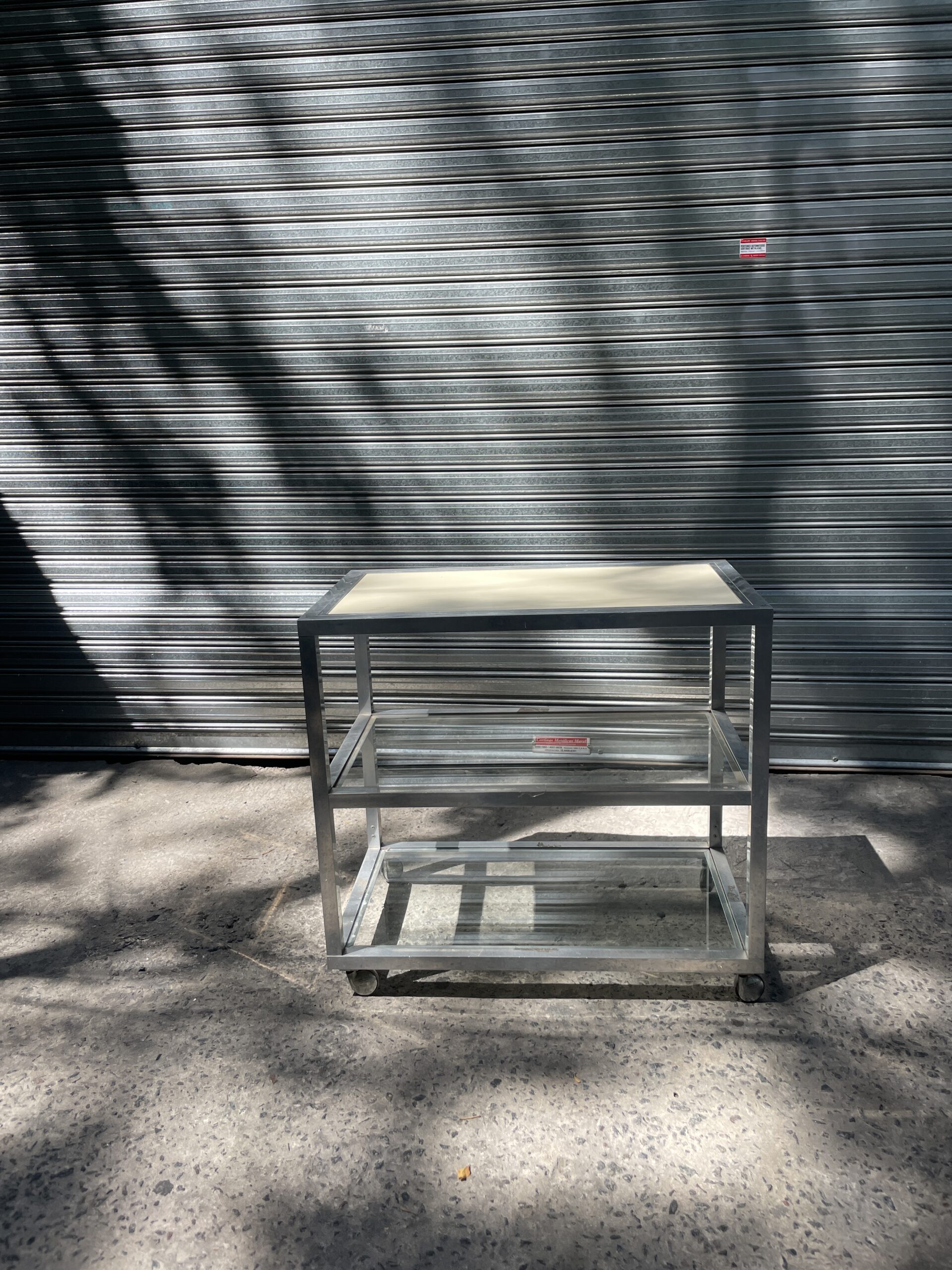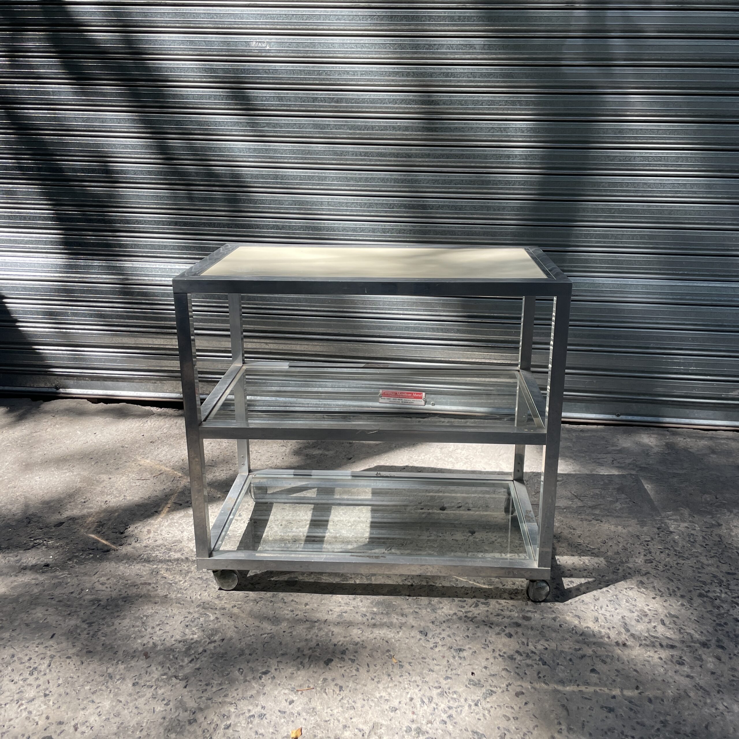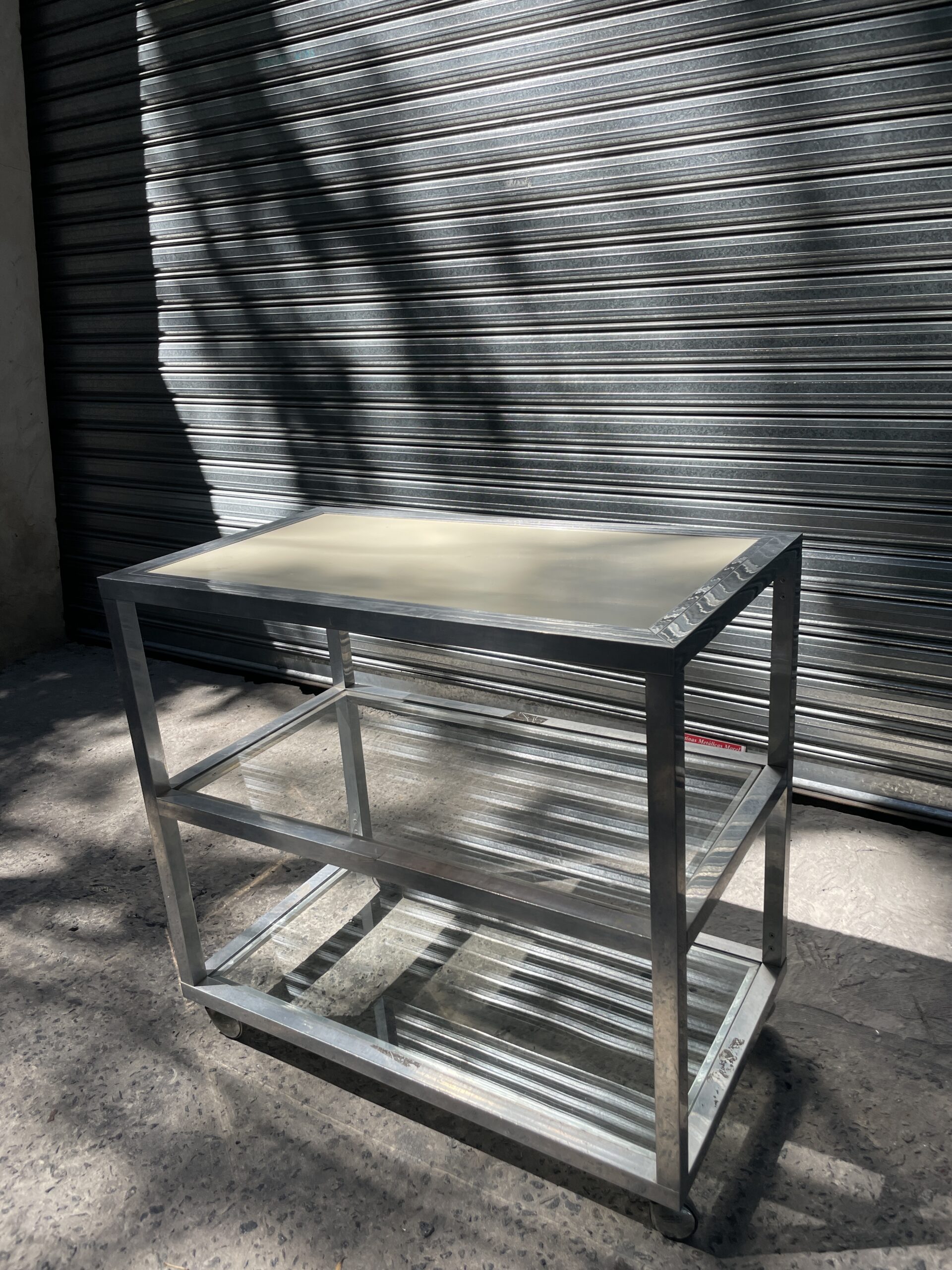 Carrito de vidrio y mdf.
