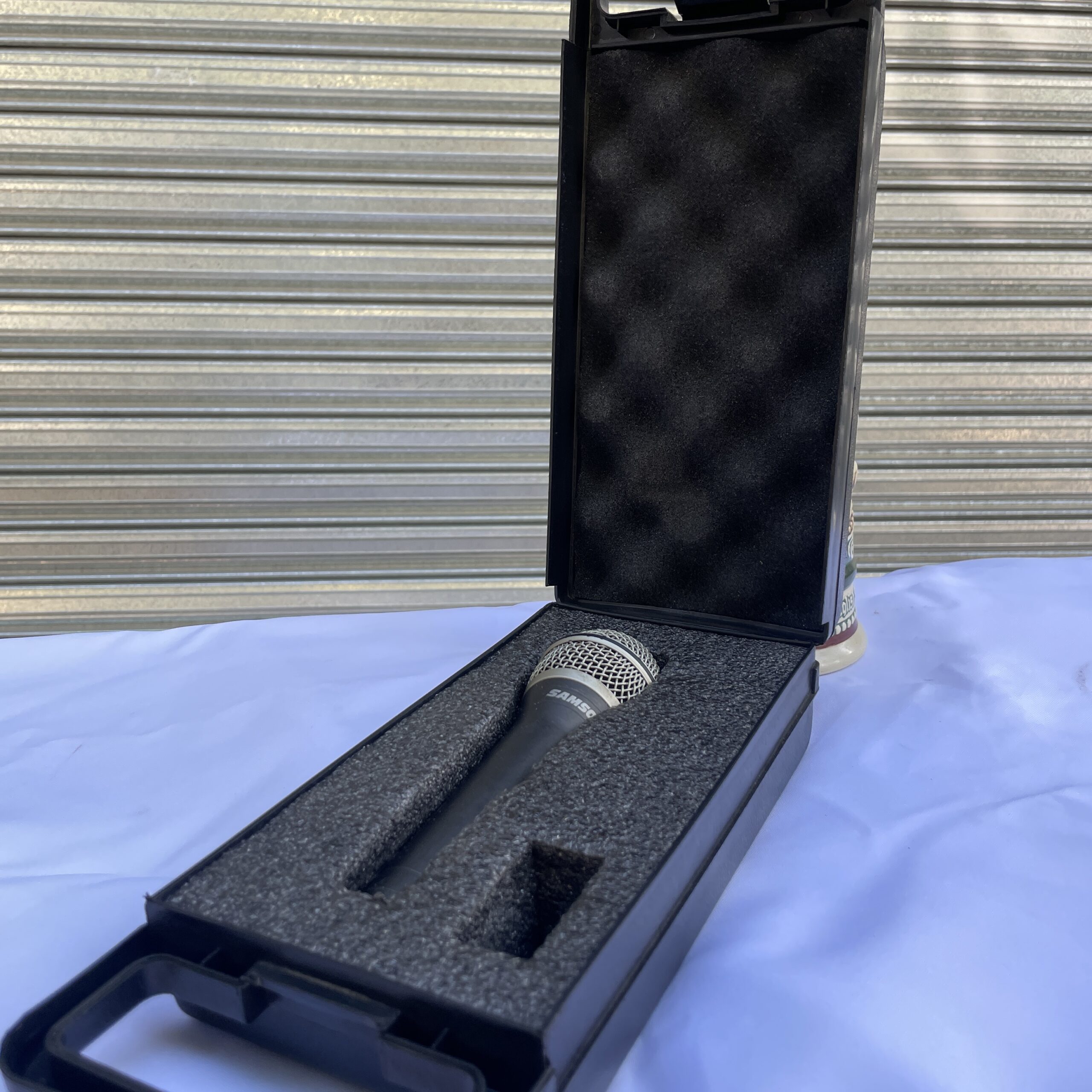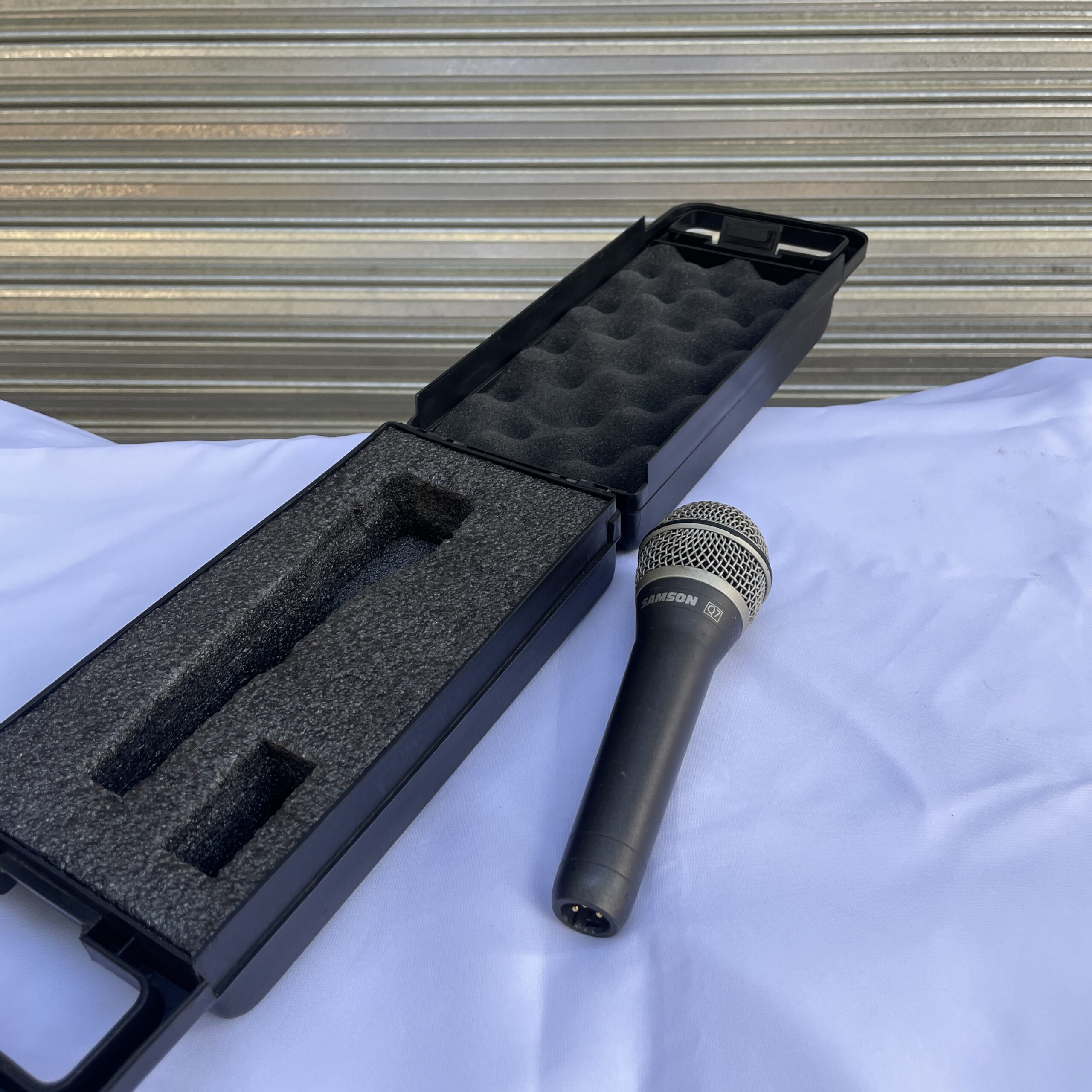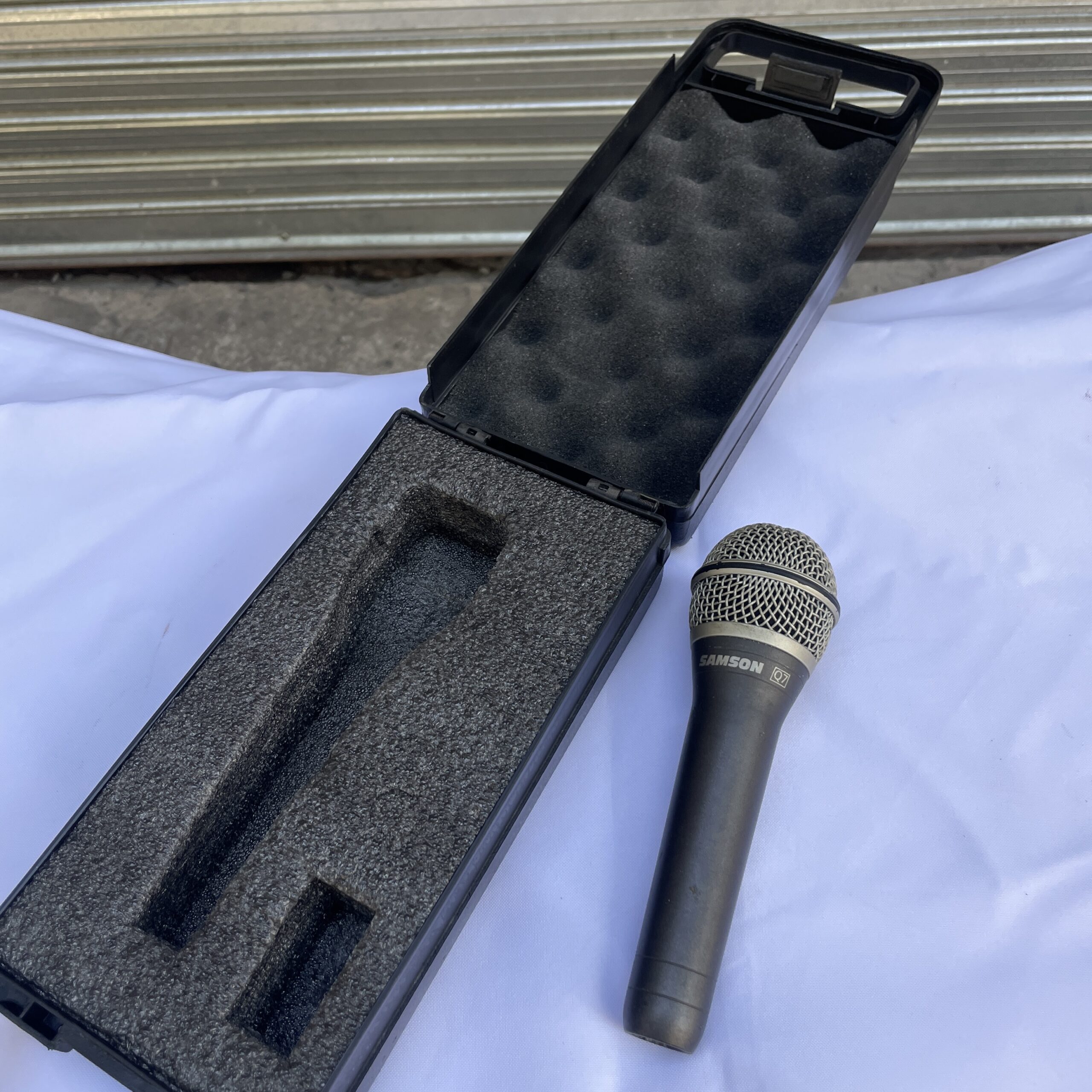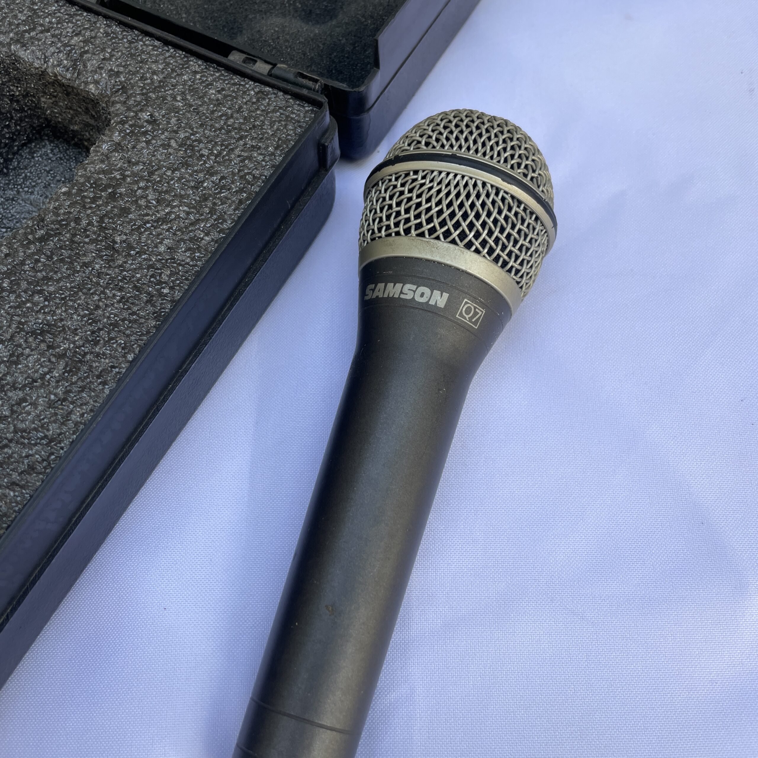 Micrófono dinámico marca SAMSON. Funciona perfectamente. Viene en su estuche.